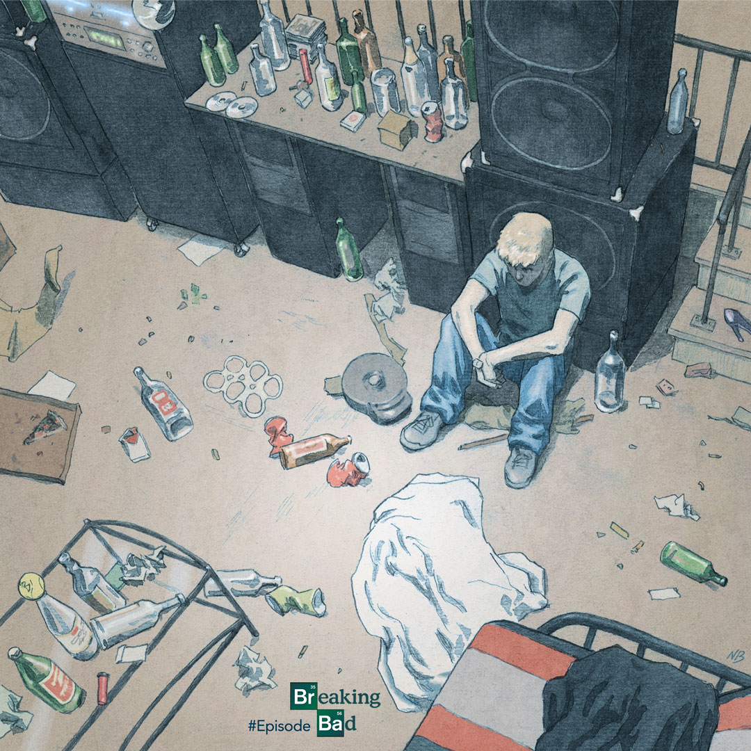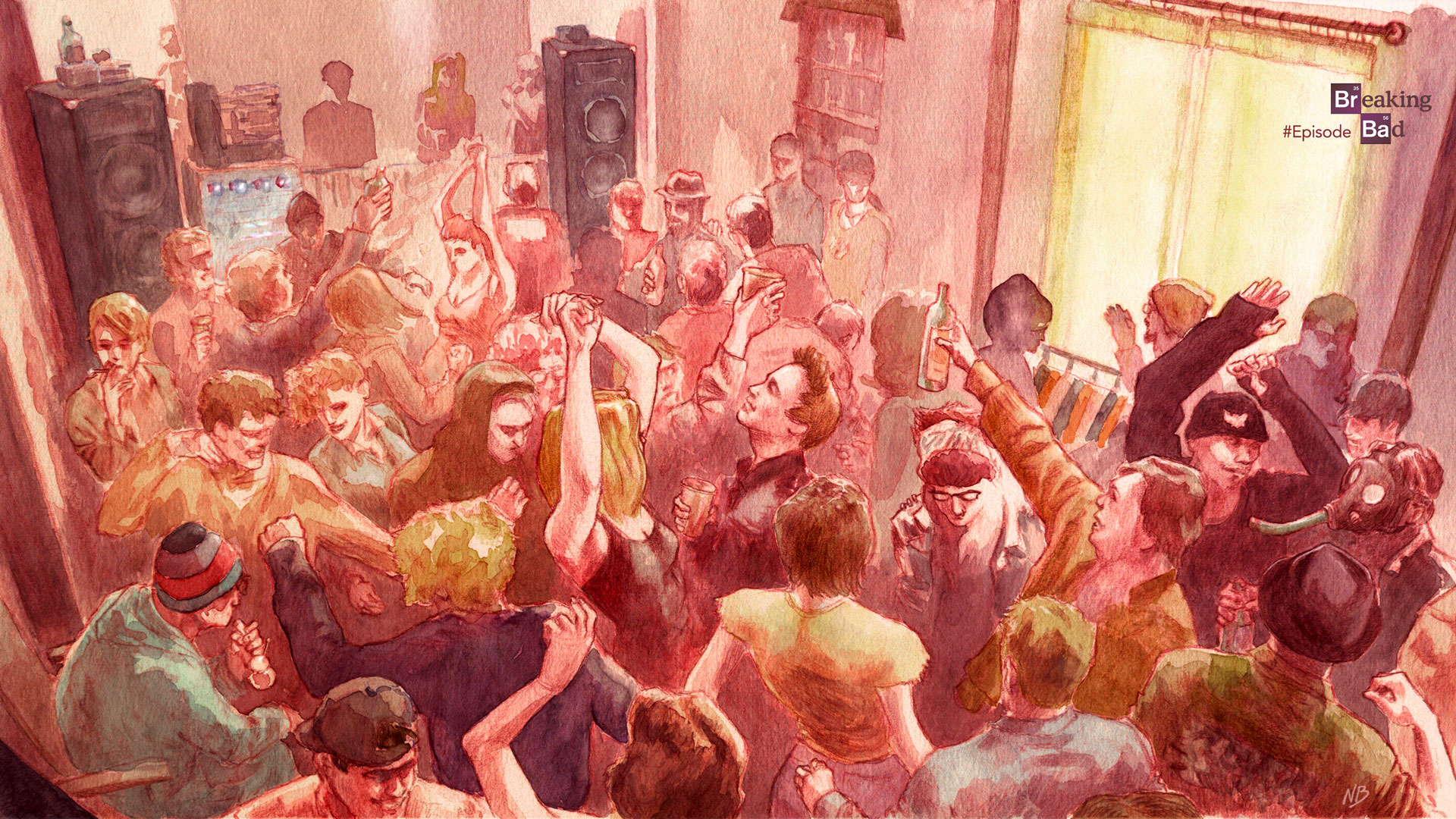 Et puis deux illustrations, dont une grande de couverture du magazine, qui se basent sur la méga-fête à rallonge donnée par Jesse Pinkman dans la saison 4 de Breaking Bad (voir l’article de Bruno Masi) :