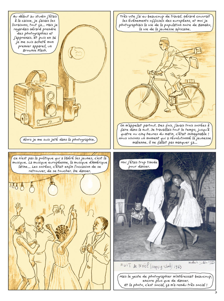Portrait en bande dessinée du photographe malien Malick Sidibé.