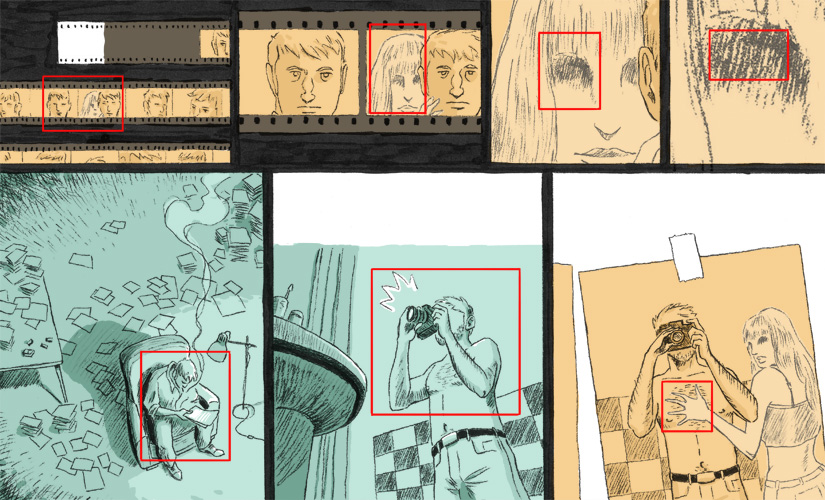{Comic strip portrait of the Malian photographer Malick Sidibé.}