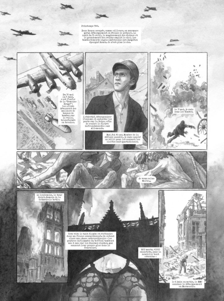 {A testimony of witnessing the allied bombings that rained down on Rouen during the Normandy battle.}
