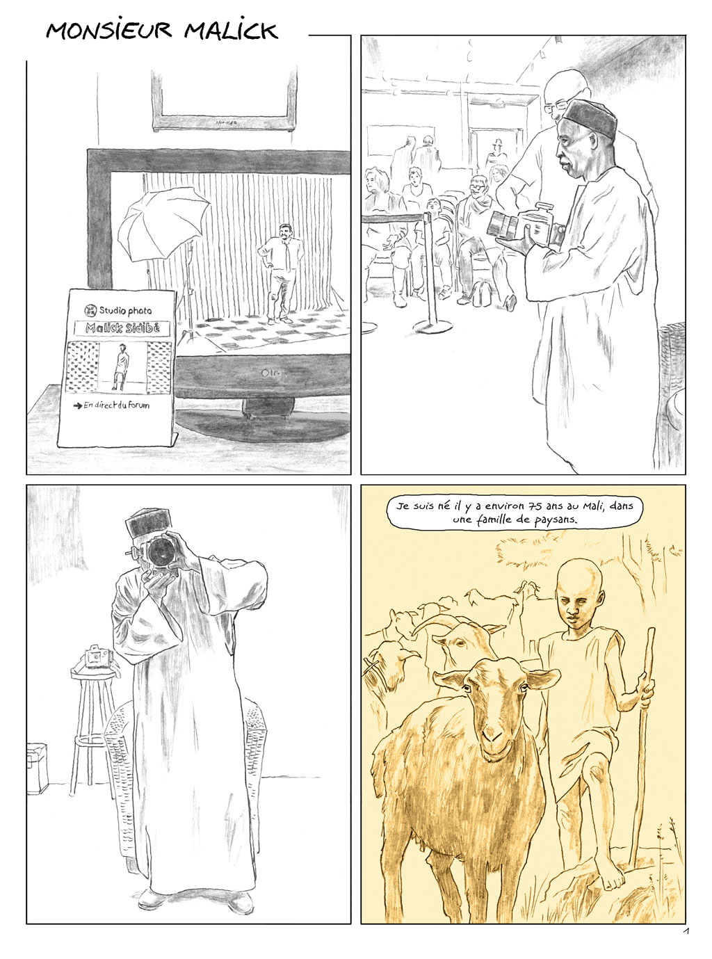 {Monsieur Malick is a short comics and a portrait of Malick Sidibé, the internationally acclaimed malian photographer, famous for his studio photo portraits.
